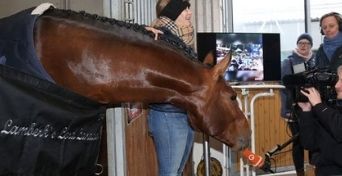 Pflichtprogramm für Pferdezüchter. Alljährlich präsentieren zahlreiche Hengststationen ihre Hannoveraner Hengste in der Niedersachsenhalle dem Fachpublikum.